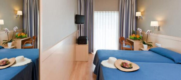 Die hellen, klimatisierten Zimmer im Hotel Guitart Central Park Aqua Resort sind in sanften Farben gestaltet und mit Holzböden ausgestattet. Alle Zimmer verfügen über Sat-TV, Telefon, Balkon und ein Badezimmer mit Fön und Pflegeprodukten. Vom Hotel Guitart erreichen Sie nach einem 5-minütigen Spaziergang das Zentrum von Lloret. Sie sind zudem nur 500 m vom Strand Fenals entfernt. Wir buchen für Sie hier nur den 4**** Bereich mit den neu renovierten Zimmern. Das kann der Gold wie auch der Silber-Bereich sein.